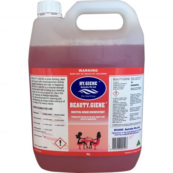 BEAUTY.GIENE RTU is a powerful hospital grade disinfectant, degreaser, sanitiser and multipurpose cleaner on benches, floors, walls, doors, equipment, windows, mirrors, chairs, bathrooms, machinery, upholstery, scissors, combs, clippers and almost all hard surfaces!