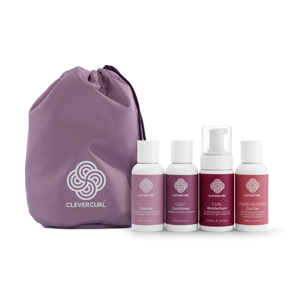 The Clever Curl Light Starter Pack is perfect for finer curl types, providing the right balance of lightweight moisture, volume and definition for wavy to curly hair. This handy, travel friendly combo contains 1 x 130ml Cleanser, 1 x 130ml Light Conditioner, 1 x 100ml Curl Wonderfoam and 1 x 130ml Curl Gel Humid Weather Clever.