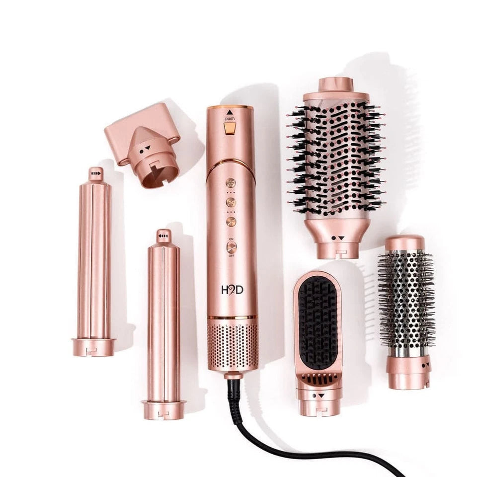 Get ready for effortless, dream-worthy hair with the all-new H2D Ultra Styler 6-in-1 Multi Styler, This 1400-watt powerhouse brings salon-quality results right to your hands. Featuring six versatile attachments—including Curling Wand Barrels, Blowout Brush, Hot Round Brush, Straightening Brush, and Hair Drying Nozzle—this styler covers all your styling needs.